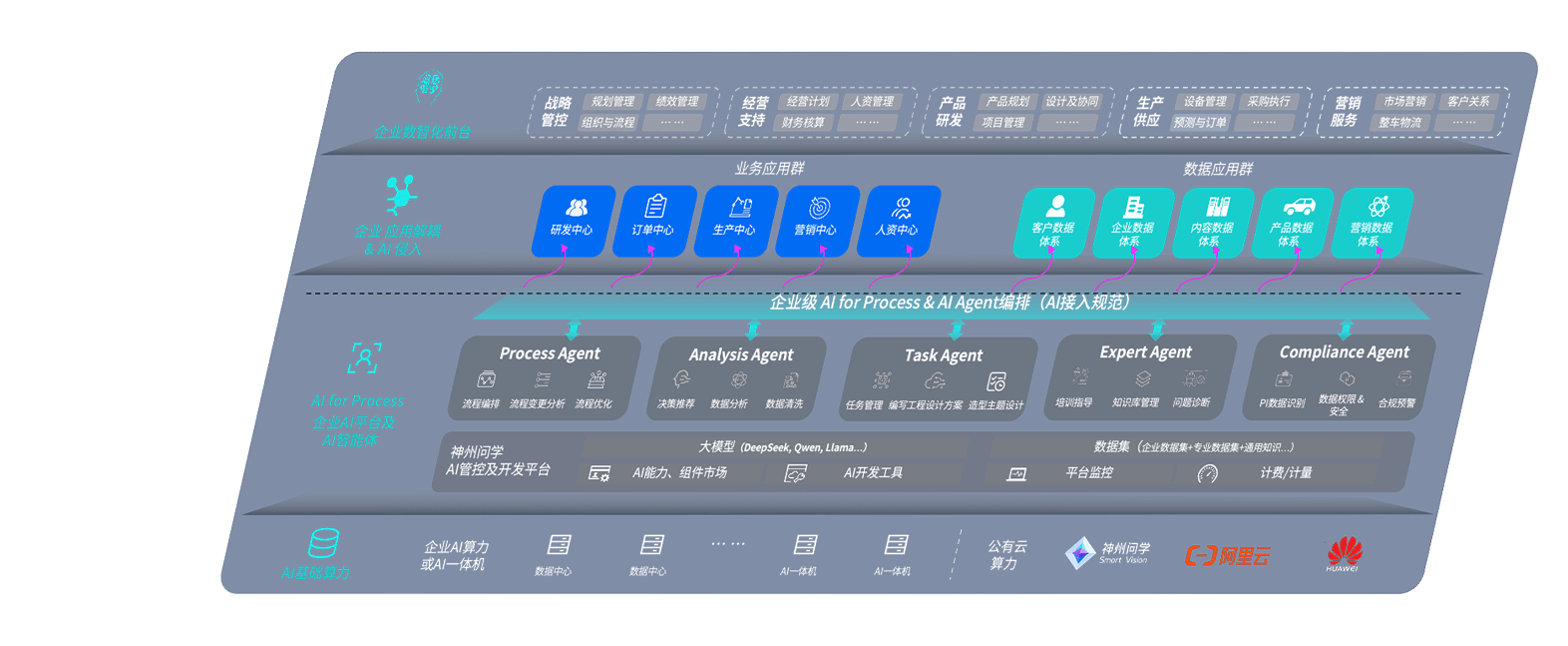 端到端的一站式AI工作空间深度融合了从企业战略规划到日常经营的全流程业务板块,,定向解决车企内部领域多、、、、部门多、、、、链条长、、、场景碎片化等难题,,支持车企快速构建以AI为核心的生产力写作体系,,实现任务执行与AI能力的无缝集成与交互